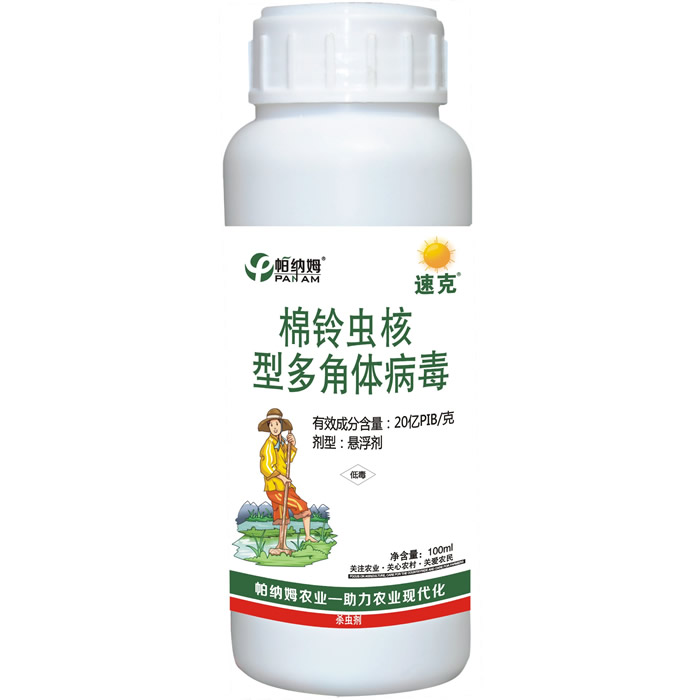 本品为活体病毒杀虫剂,具有很好的杀虫、杀卵和驱虫效果;防治棉花棉铃虫有效。本产品具有持续感染,降低群体基数之作用。